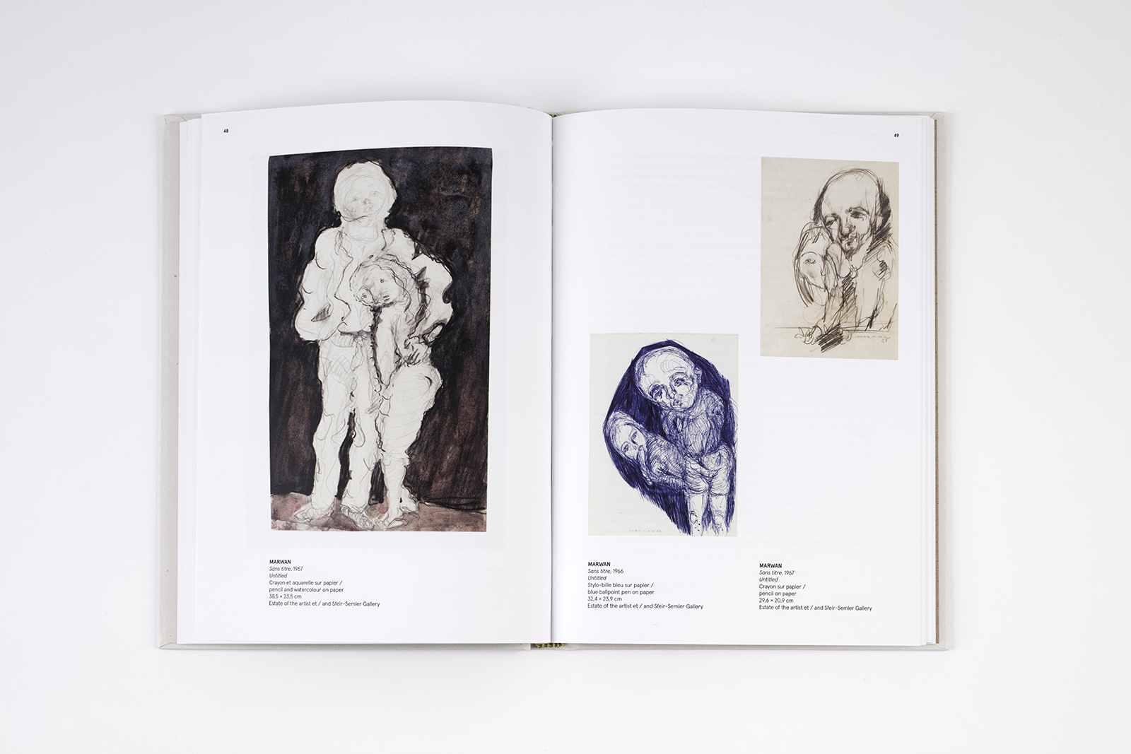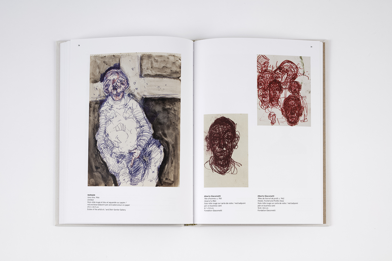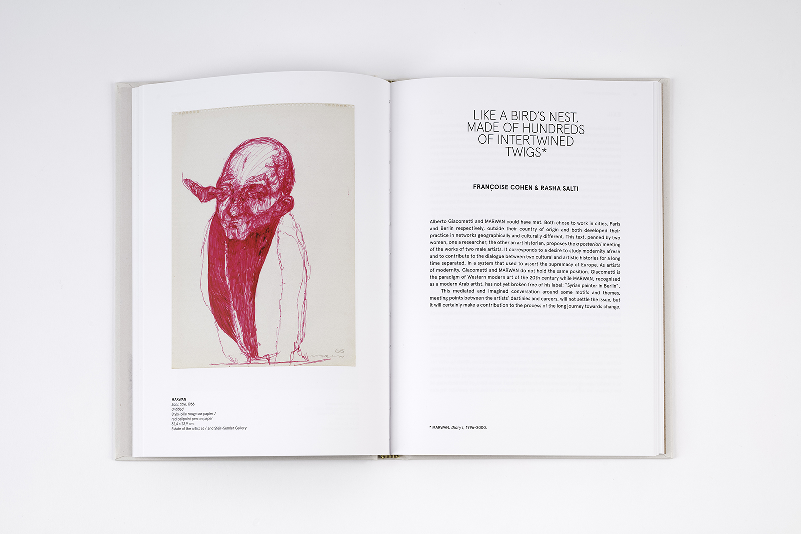 Ouvrage bilingue (français/anglais) paru à l’occasion de l’exposition Giacometti / Marwan, Obsessions. Commissariat : Françoise Cohen. Textes : Françoise Cohen, Rasha Salti. Entretien Hans Ulrich Obrist et Marwan. Édition courante de 8000 exemplaires, impression en quadrichromie sur Magno Volume 150g, pages de garde Sirio White 130g, couverture reliée sur Wibalin Natural White 130g. Impression : Graphius, Gand